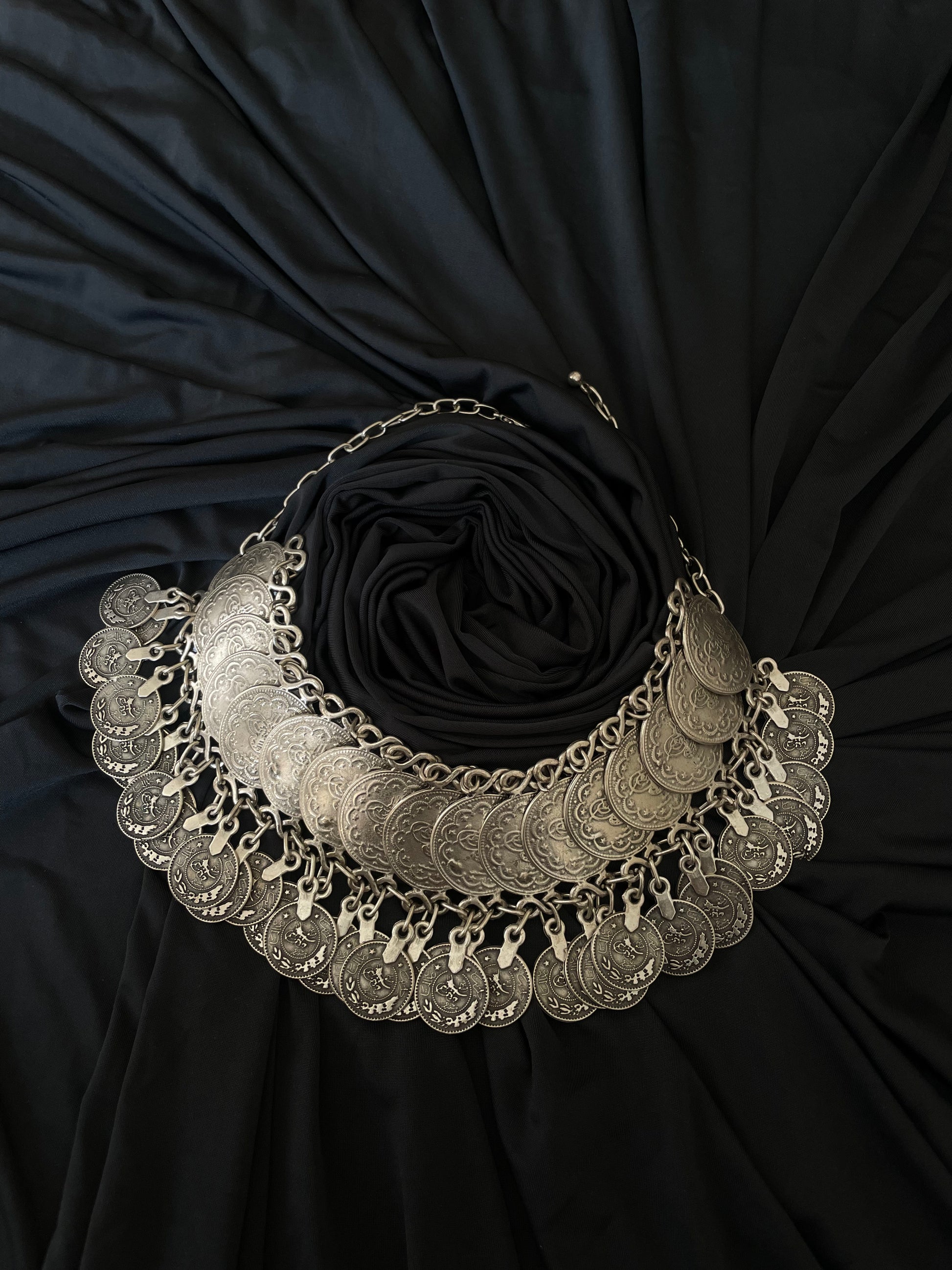 Make a bold statement with this handcrafted in Istanbul necklace, inspired by historical Turkish craftsmanship. Featuring a layered chain design with intricately engraved coin pendants, this piece embodies tradition, power, and timeless elegance.